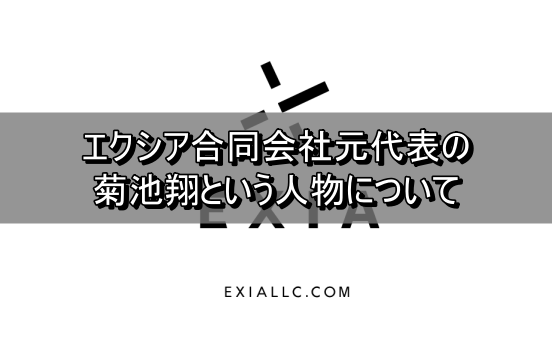 エクシア合同会社は菊池翔氏が代表を務める投資会社であり、主にCFD(差金決済取引)やFX(外国為替証拠金取引)などの金融商品を扱っていた本体であるEXIA合同会社と子会社のエクシア・アセット・マネジメント株式会社などからなるグループ企業です。。