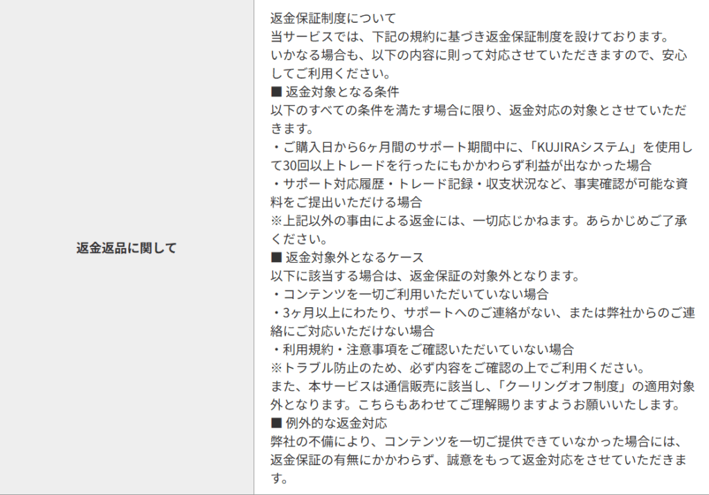 特商法に基づく表記を見ていくと、有料サービスに関する説明と返金保証に関する項目が記載されていました。