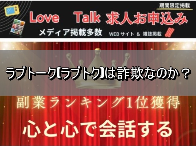 ラブトーク(ラブトク)はLINEを使って心の介護をするという広告を出している副業サービスなのですが、結論から言ってしまうとこのサービスは詐欺の一種です。